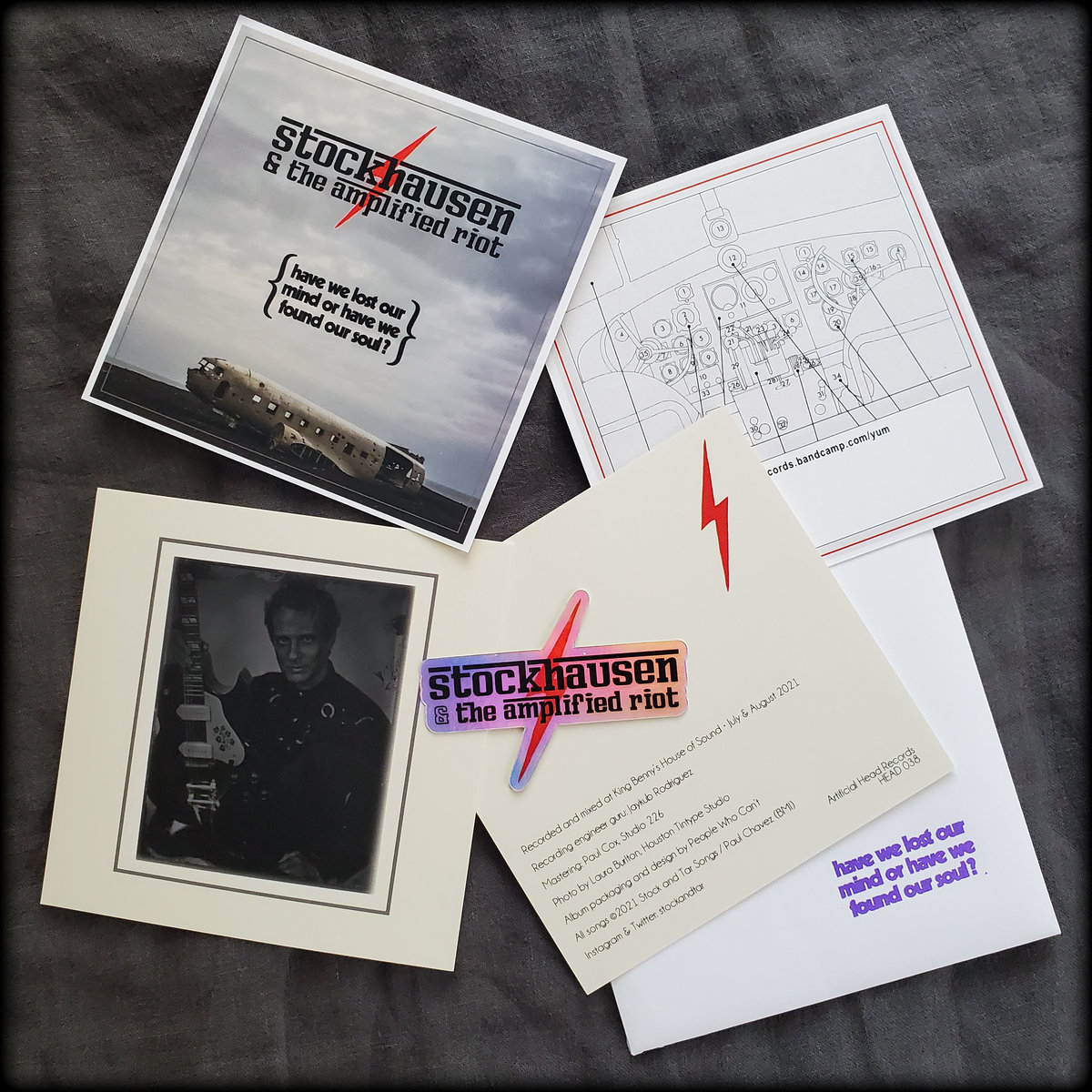 Trying something new here. Instead of buying a download / download card - I've created a Download Dossier. The dossier is a 5" x 5" envelope and contains a heavy cardstock postcard of the front and back cover art, a holographic logo sticker, and a second cardstock postcard of album credits / photo.