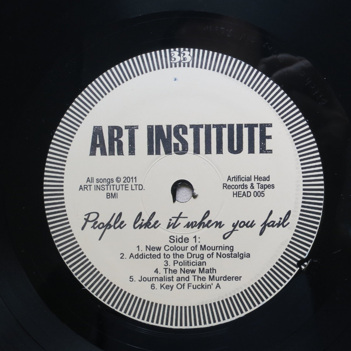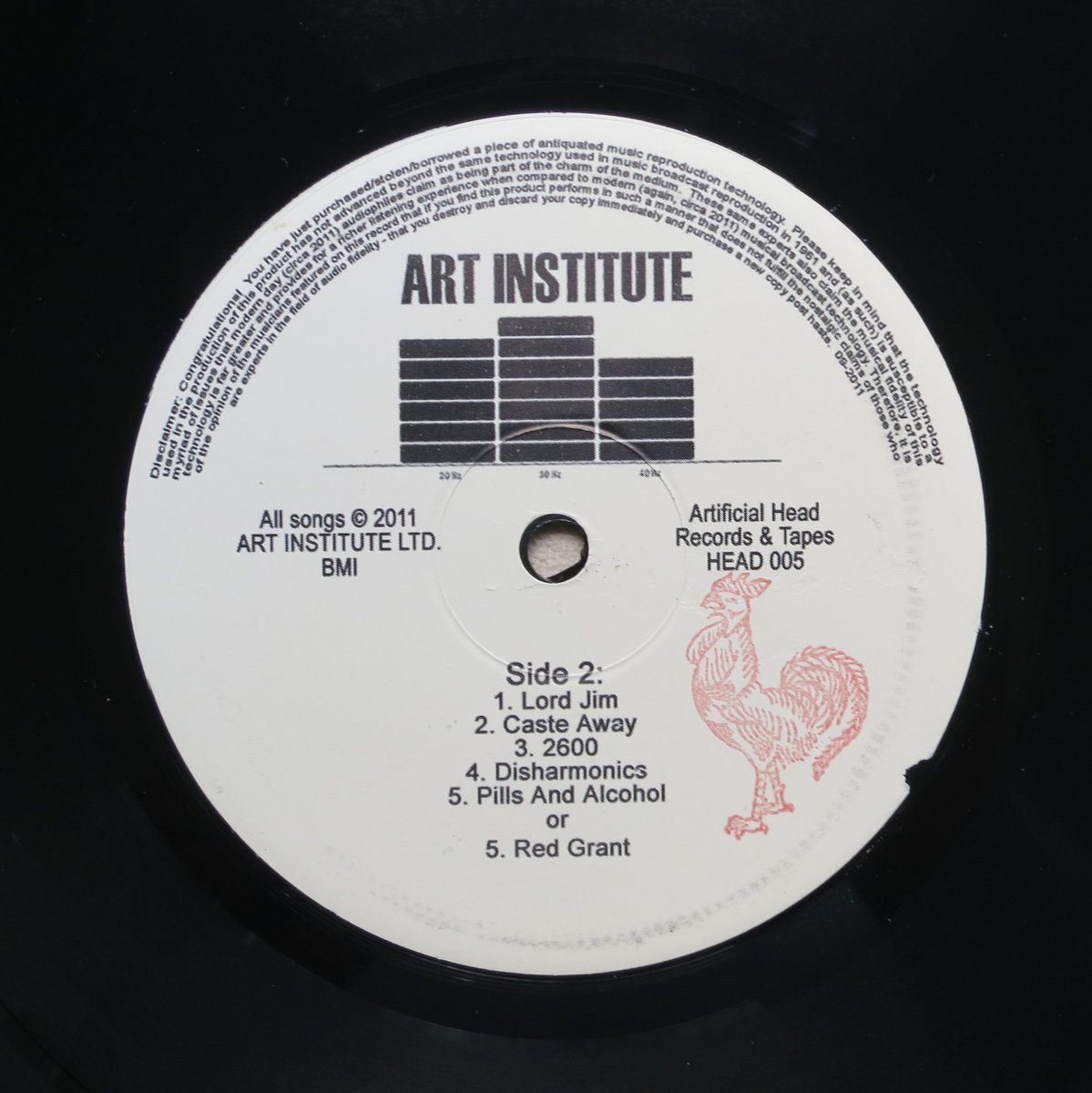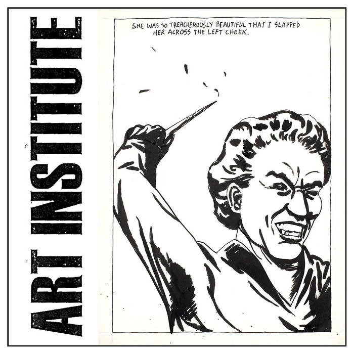 The forward-thinking men of Art Institute have spent a considerable amount of time and attention to the development and production of a vinyl record release of their musical efforts. //// This vinyl release is pressed on black vinyl and includes a locked groove as well as a roulette groove of the last two songs on the release. Random items (stickers, band-aids, screws, mystery CD-Rs) will also be included in the physical copy. The front cover artwork was created by Mr. Raymond Pettibon. Yes, THAT Mr. Raymond Pettibon. //// Once this edition of 300 is gone (either through sales, disasters, acts of God, etc) a second edition MAY be pressed, but will not include extra stuff. A new plate will be cut that removes one of the roulette groove songs. //// Yes, we're dicks like that.
